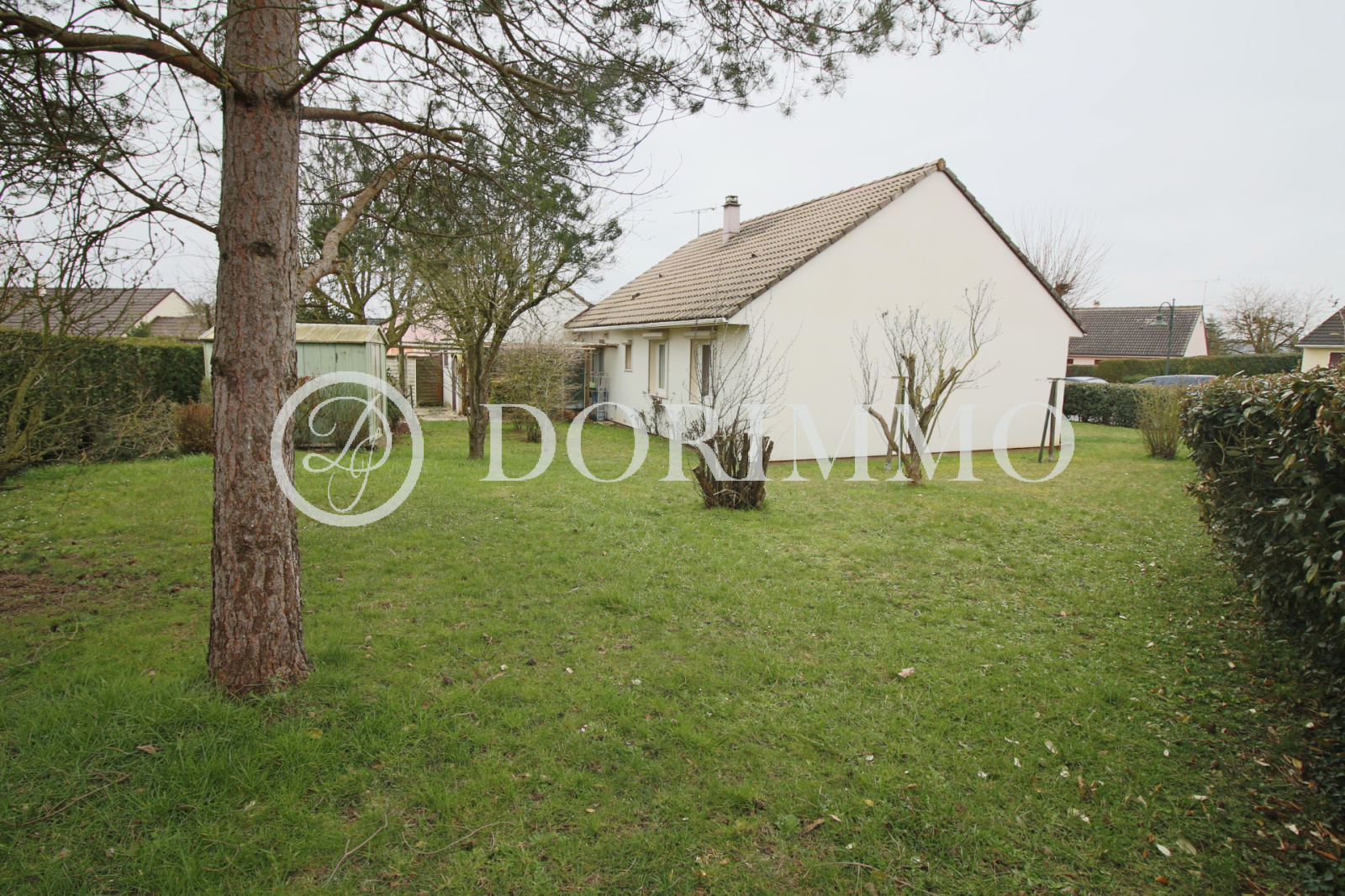 Pavillon de plain-pied offrant entrée, séjour, cuisine aménagée et équipée, 3 chambres, salle d'eau, wc.