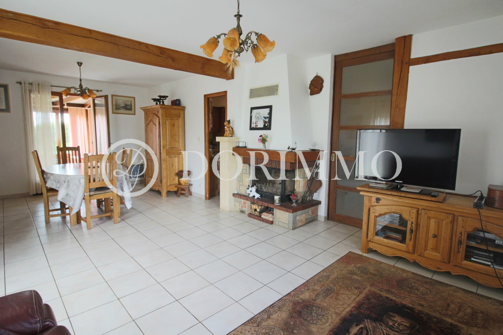 Pavillon sur sous-sol total offrant entrée, séjour double avec cheminée insert, cuisine aménagée et équipée, 2 chambres, salle de bains + douche, wc.