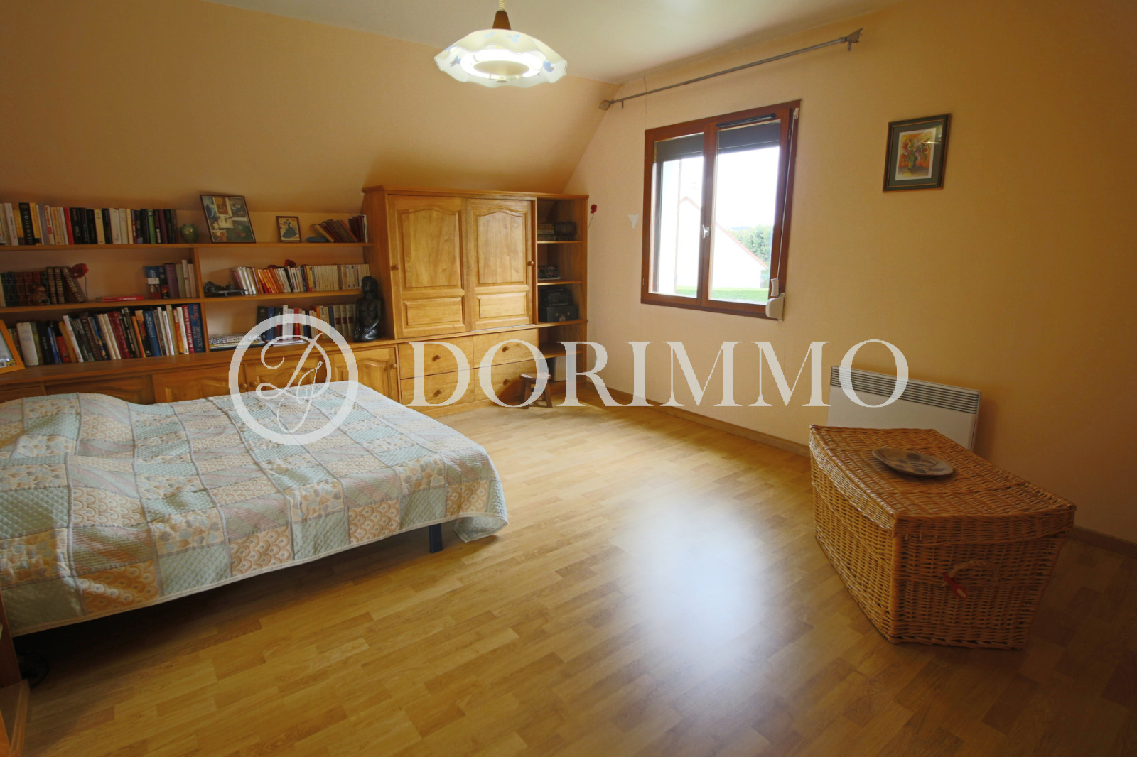 A l'étage palier desservant 2 chambres dont une avec placards, dressing, wc.