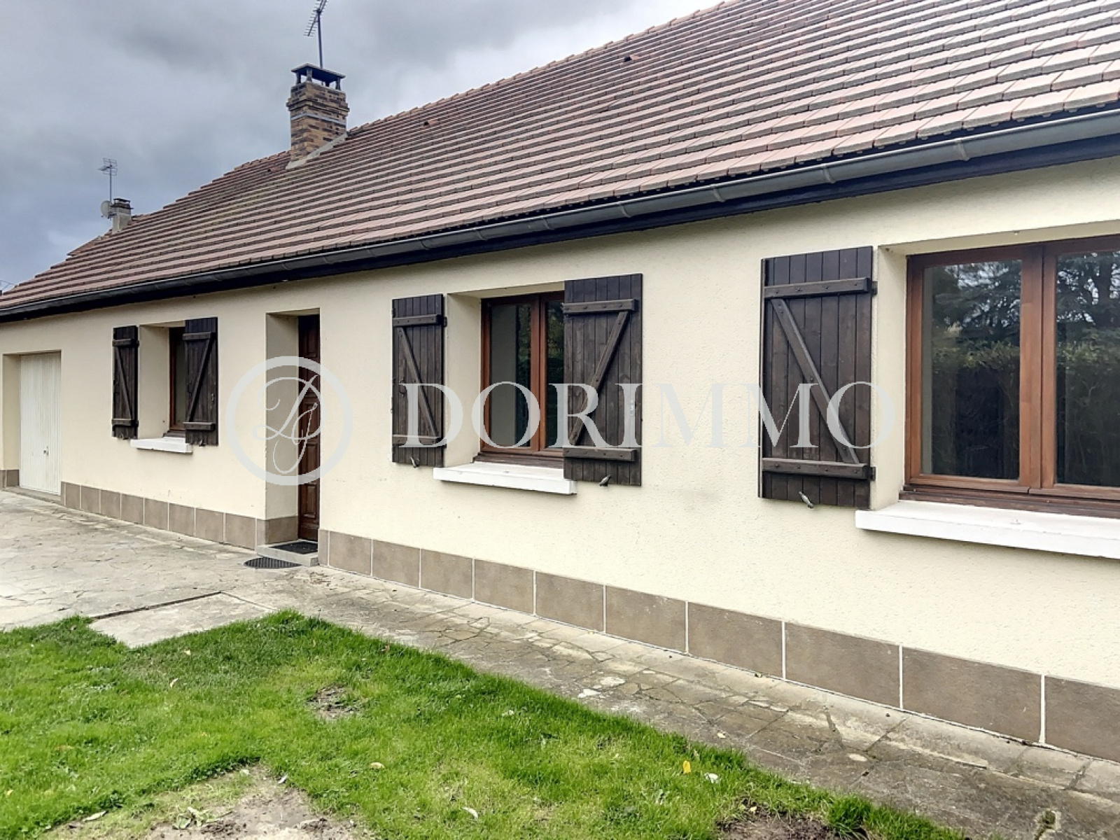 Pavillon traditionnel de plain-pied offrant entrée, séjour double avec cheminée insert, cuisine aménagée ouverte sur séjour, 2 chambres (possibilité 3 chambres), bureau, salle de bains, wc.