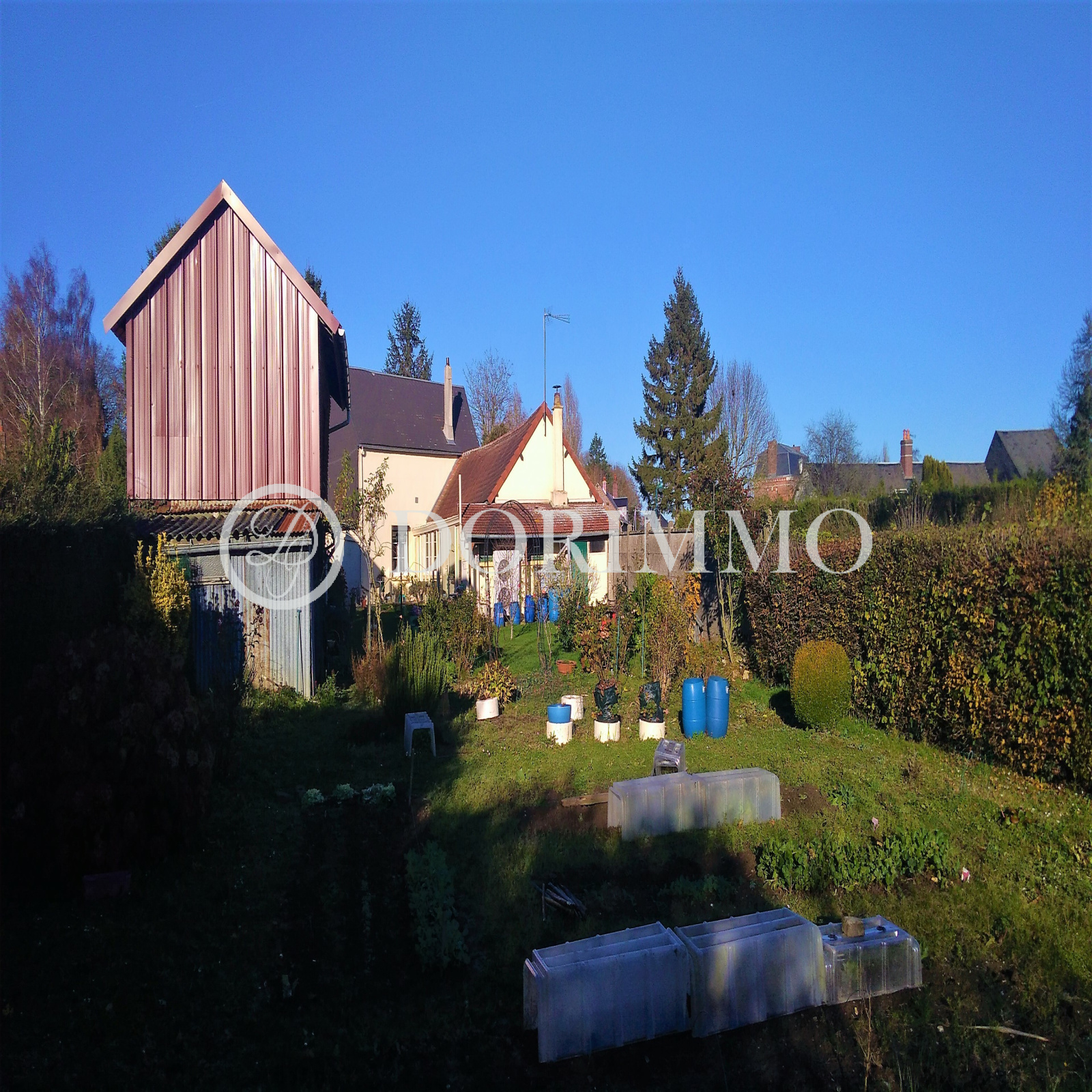 Au calme sans vis à vis, la tranquilité assurée. Elle comprend une véranda, une grande cuisine, un séjour, un petit salon ou bureau, 3 chambres, salle d'eau , wc, garage , 80M² de dépendances diverses sur un beau terrain clos de 1682M²;