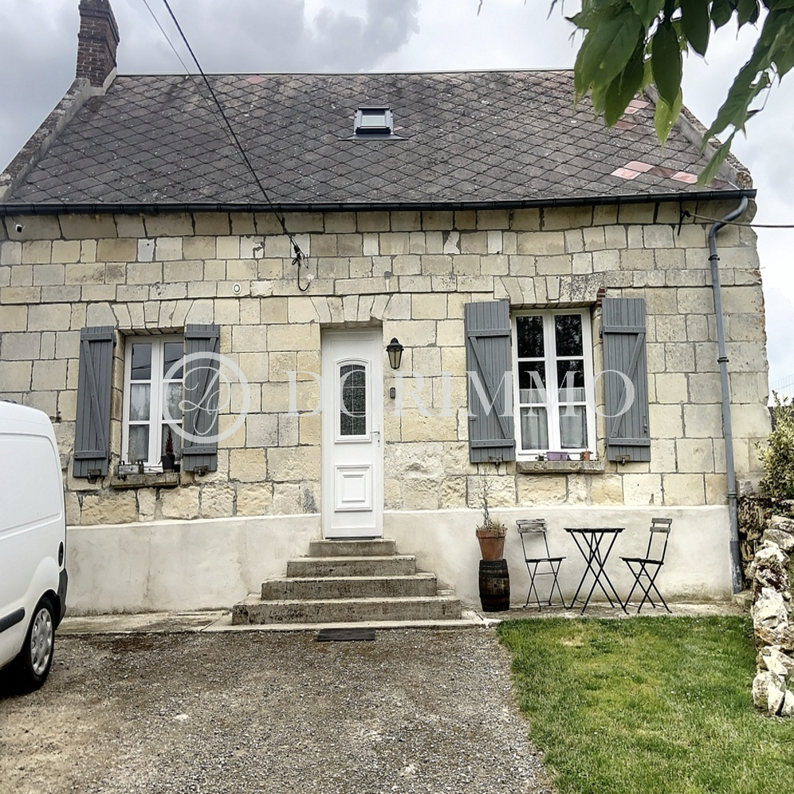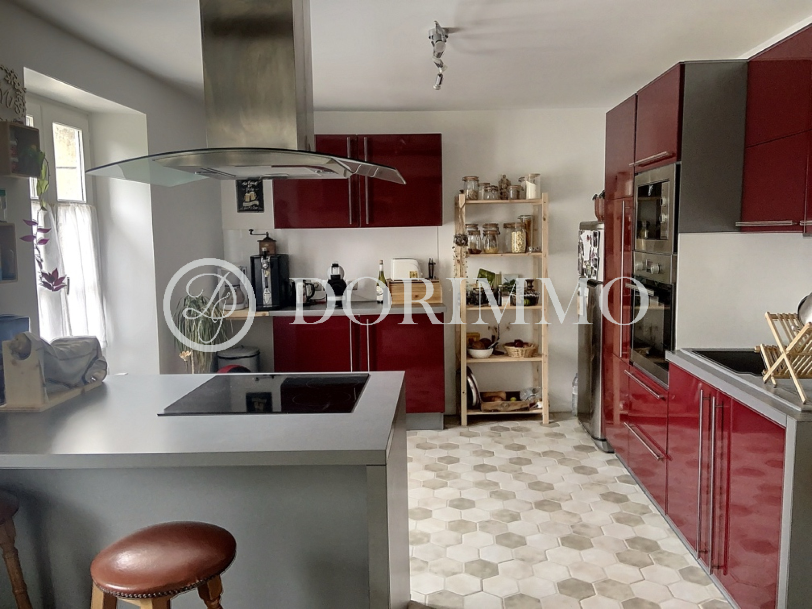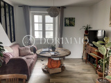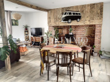 Maison ancienne en pierres rénovée offrant séjour double avec poêle à pellets, cuisine aménagée et équipée ouverte sur séjour, bureau, salle d'eau, wc.